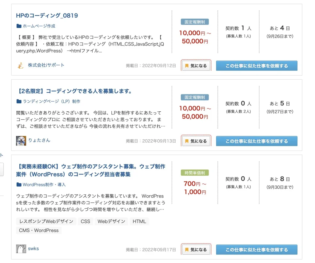 このように、HTML・CSSのコーディング代行やデザイン依頼なんかは需要があり案件もたくさんあります。