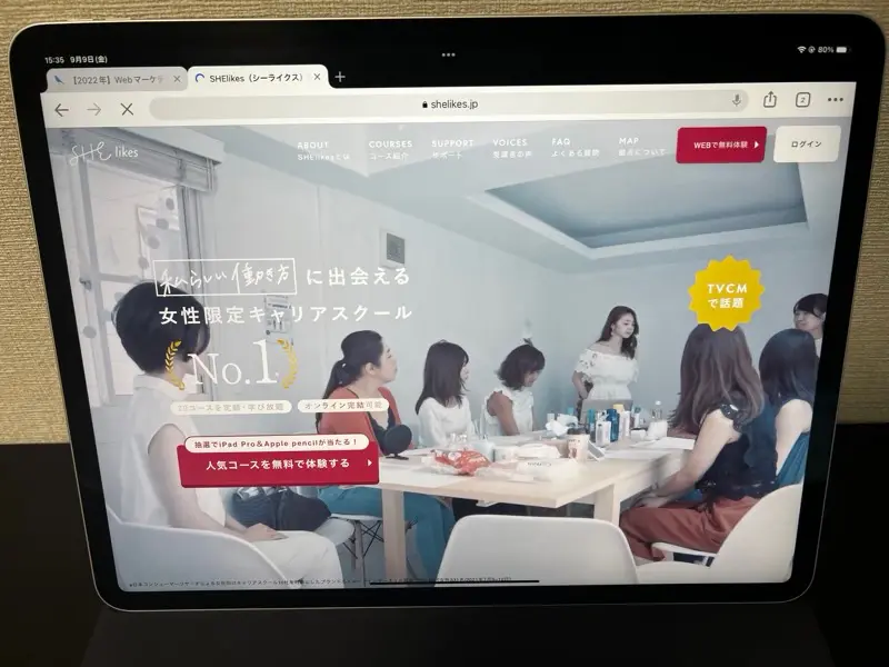 SHElikesは、女性向けのキャリアスクールです。SHElikesでは、Webデザイン・Webマーケティング・Webライティングなどのスキルが学べるのが特徴となっています。パソコン一つで働けるスキルを身に付けることで、「私らしい働き方」に出会えるスクールです。