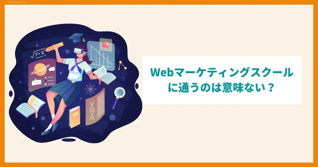 実際に、Webマーケティングはどういったものを学習すればいいのかはっきりせず、高額な費用を払ってまでスクールに通う意味があるのか疑問に思ってしまいます。